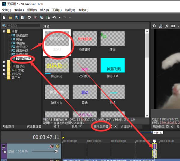 Vegas怎样为视频添加渐变色字幕