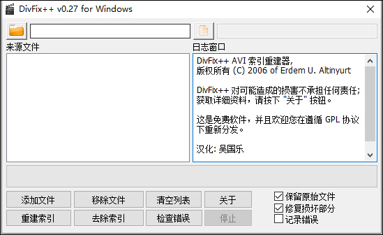 divfix++汉化版是一款非常实用的视频修复软件,能够通过重建文件的索引部分轻松修复avi视频文件,同时支持检查错误,去除索引,记录错误等功能,还可以支持使用CLI命令行指令自动修复或删除影片,欢迎有需求的朋友前来本站免费下载。