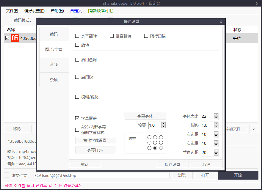 5、自定义输出文档有很多方法,用户甚至可以转动字幕。你可以调整字体大小和样式,你可以添加图像,如调整和模糊。在转换过程中可以使用10多个编码器,这意味着用户可以生成高度自定义的文档。