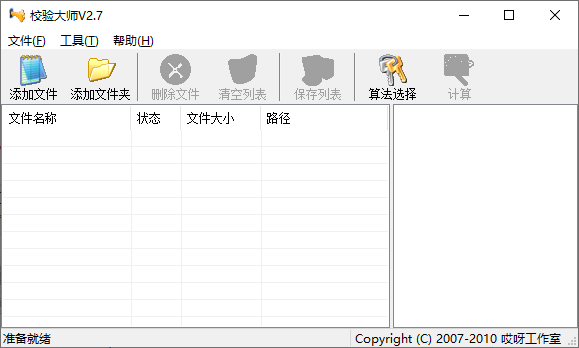1、运行“校验大师”程序,通过点击“添加文件”或将文件拖放到程序主界面来打开要获取MD5码的文件