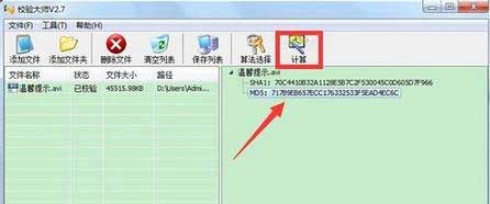 3、然后点击“计算”按钮,就可以在程序右侧生成文件所对应的MD5码,点击文件名进行展开即可查看到