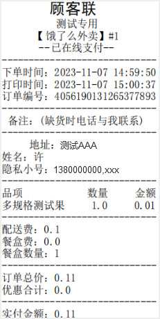 (1)已接单:客户外卖平台下单后,此界面会接收到订单信息,手动点击确认然后点击重打印小票;