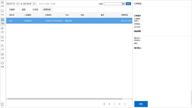 (4)异常订单:外卖平台情况获取异常此处不显示相关的订单明细;