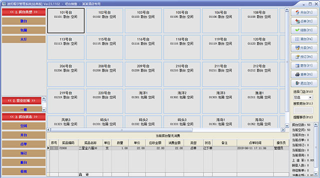 2、完全根据餐饮管理系统的规范进行开发:可管理任意多个营业区域,多个营业时段,餐台、房间分别设置茶位费、服务费,所有餐台、房间可以按照时段独立设置最低消费额,不同包房,设置不同固定房费或计时收费等
