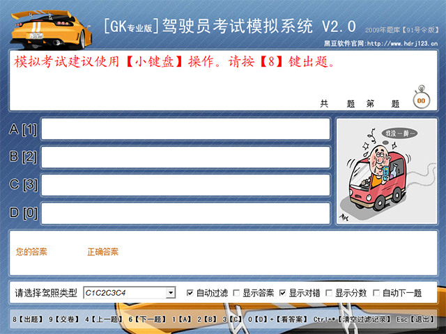 软件操作起来也挺方便的,下载解压后直接运行就行,不用安装。进入系统后按“8”就可以开始答题了,答完一题直接点下一题,简单又高效。