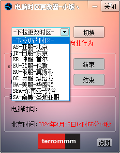 1、更改电脑时区,支持北京,东京,首尔,伦敦等时区。