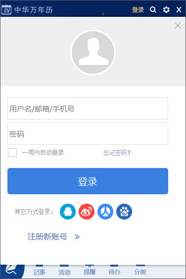 打开中华万年历电脑版,点击左上角登录按钮即可。