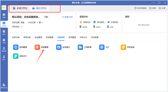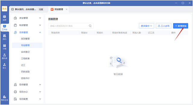 1、首先在项目工作台出选择班组管理