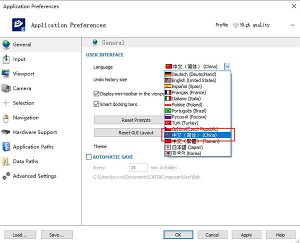 1、首先打开软件,发现DS CATIA Composer R2022还是英文的界面;