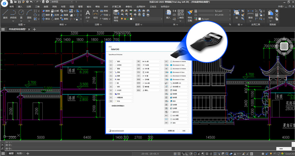 适配3dconnexion®的3D鼠标设备,支持将常用的CAD功能配置到鼠标按键上,通过鼠标中置旋钮遥感的组合操作实现2D 视图和3D视图的平移、缩放和移动等,满足特定场景用户需求。