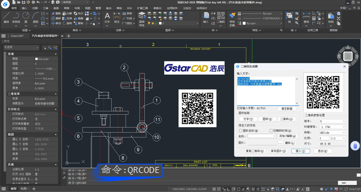 支持通过QRCODE命令调出二维码生成器,将二维码以图片的形式插入图纸中。通过手机、平板等设备扫码的方式,即可获得设计单位、项目名称、项目日期、图纸名称等信息。