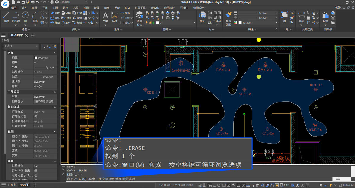 套索选择模式升级,用户可以随意绘制不同的区域来选择图形对象,支持窗交选择、窗口选择栏选多种套索模式,解决传统框选选择局限性,满足特定复杂图形的选择需求。