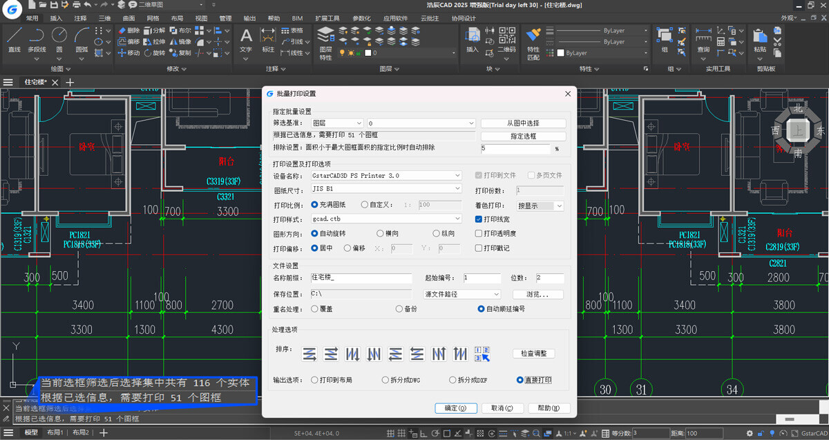 全面升级批量打印,新增合并多页PDF、拆分为单独DWG\DXF、图框打印筛选基准、编号预览显示、处理选项,检查调整等十几项功能,使得打印更智能高效。