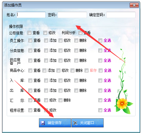 3、输入姓名、密码等,选择操作权限点击保存即可