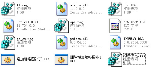 这个PSD、AI、EPS、CDR的缩略图补丁确实挺实用的!安装之后,在Windows下可以直接看到这些矢量格式的图片缩略图,不用再打开文件就能预览内容。这对于设计师来说简直是神器,省去了很多麻烦。安装方法也很简单:解压文件,运行“增加缩略图补丁.EXE”就行了,想卸载的话也有对应的删除程序。