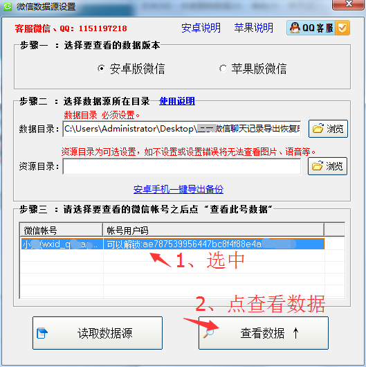 3、想要查看数据的时候,需要先选中微信账号,再点击"查看数据"。