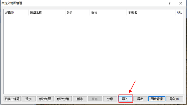 1、根据上面步骤将自定义地图管理功能打开后,点击导入功能