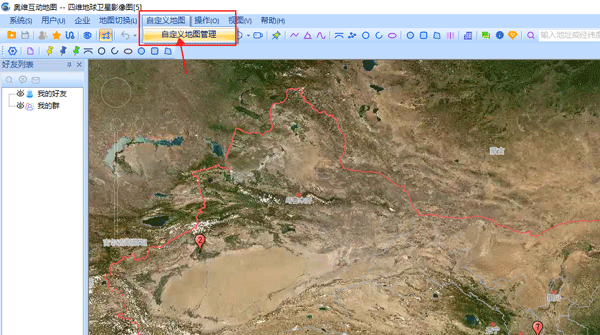 1、在软件中点击左上角工具栏中的自定义地图功能,并点击自定义地图管理
