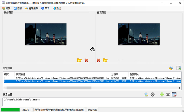 新雨相似图片查找助手是一款简单易用的相似图片查找软件。这款软件能帮助用户找出相似度非常高的照片,这样用户就能在连拍的好几张照片里找出自己最喜欢的一张留下,非常的实用。同时新雨相似图片查找助手操作也是非常简洁,支持在线升级,大大节省大家的时间,时间是人最大的成本,同样也是每个人的资本和财富,有需要的朋友欢迎前来下载使用哦!