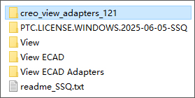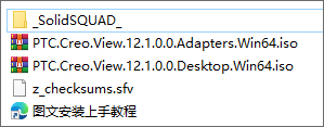 1、下载解压,得到ptc creo view免费版,以及相应的_SolidSQUAD_激活补丁文件;