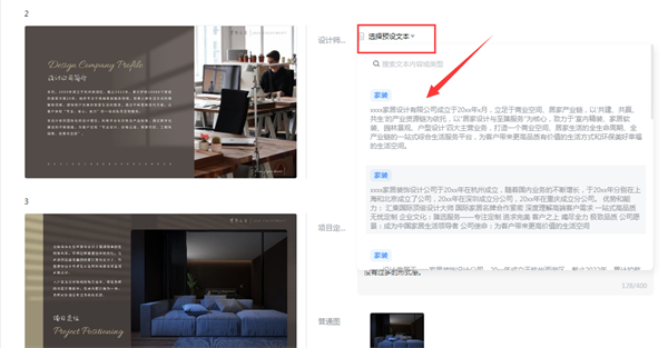 4、对文案内容进行编辑修改,可以选择使用自带的文案内容。
