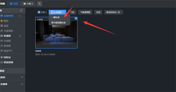 2、勾选自己所需要的效果图,点击生成提案。