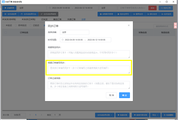 5、根据订单编号同步(多个订单编号,请用英文逗号 ”,” 进行分隔)