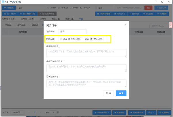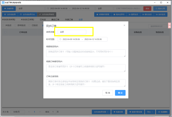 2、可以选择特定店铺同步(不选即为绑定的所有店铺)
