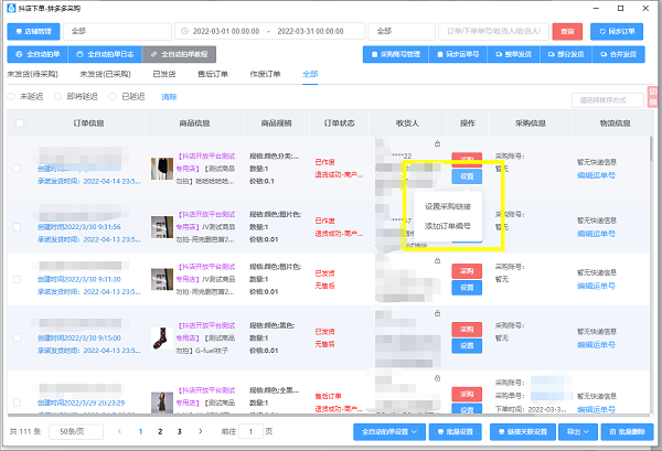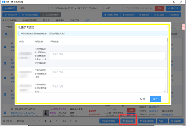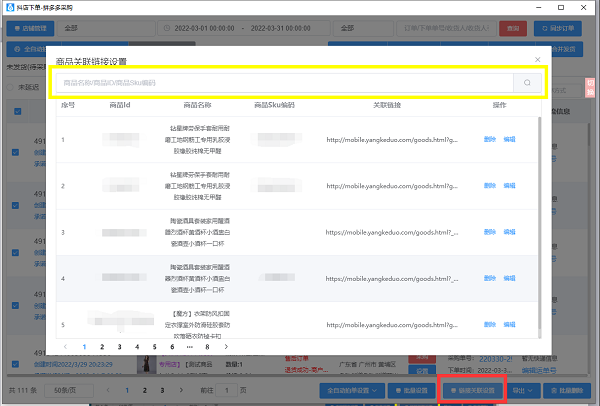 4、链接关联设置,同步订单中的步骤2更新采购链接就是根据此列表数据来的 如需直接更改某个商品的采购链接 可根据商品ID搜索修改后进行重新同步订单