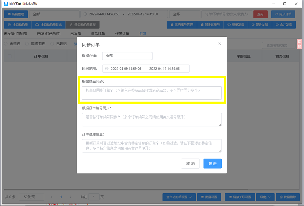 4、根据商品名称或商品ID同步(不可同时同步多个)