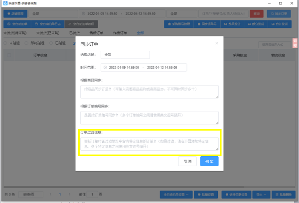 6、过滤订单(可按照省、市进行过滤,过滤如需输入多个特定信息,请用英文逗号 ”,” 进行分隔)