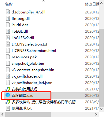 1、下载解压,得到百度翻译电脑绿色版,直接双击exe文件运行软件;