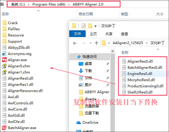 1、下载解压缩,得到abbyy aligner原文件+汉化+crack激活文件。