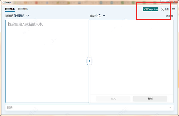 3、安装结束后,DeepL将直接启动,可看到右上角还为试用版,直接退出程序即可;