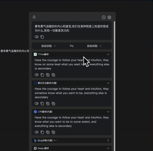 集成DeepL、Google、OpenAI等主流翻译源,支持自定义添加翻译API(如小牛翻译、腾讯交互翻译)