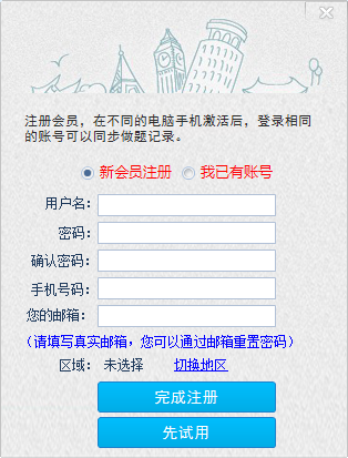 第二步:注册会员登录,可在不同设备同步做题记录,或点“取消”进入做题;