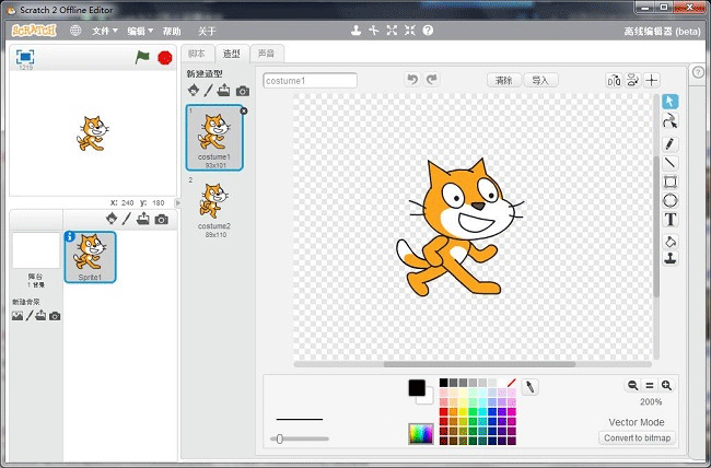 scratch2.0是由米加少儿编程社区推出的一款界面精美,方便实用的图形化编程软件。scratch工具利用图形化界面,把编程需要的基本技巧囊括其中,包括建模,控制,动画,事件,逻辑,运算,等等。孩子非常容易掌握,而内涵一点都不简单。通过这个工具平台,孩子可以快速掌握编程技巧,充分发挥自己的想象力。全中文操作界面,本土化部署除在线Web编辑环境外,还提供多个版本的Scratch 离线编辑环境,速度更快,更易于使用。有需求的朋友赶紧下载本款Scratch2.0吧~