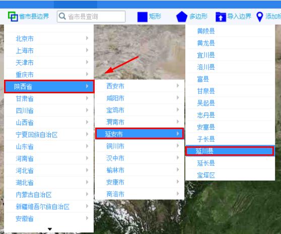 7、内置全国省市县边界坐标,可以直接选择行政区范围下载;