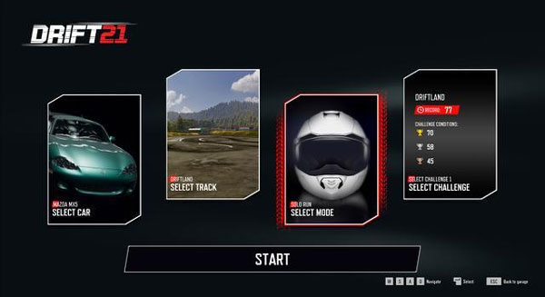 在赛道试跑模式下有三个选择,最左边是选择赛车,第二个是选择赛道,第三个则为选择游戏模式。当前能够供玩家选择的赛车只有3辆车,3条赛道和3个基础模式,在游戏中无法和任何玩家对战甚至连AI都没有,大家只能自己一个人在赛道上一圈圈的跑。