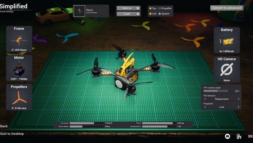 玩家可以根据真实无人机的参数调整自己的无人机设置,包括重力、空气摩擦和螺旋桨效率等,让飞行体验更加真实。