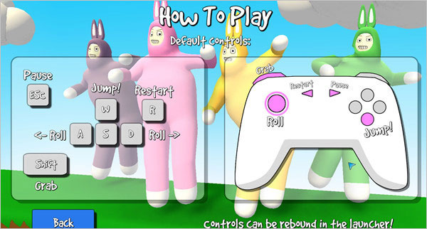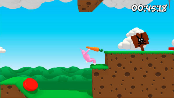 联机功能也很有趣,最多支持四人一起玩,但有个小规矩:不能让队友的生命值比自己多!死亡竞赛模式特别刺激,可以互相“坑队友”,把对方踹下悬崖或拖到尖刺上,简直是欢乐与疯狂的结合。游戏的操作简单,主要是滚动、跳跃和抓握,但要拿到胡萝卜可没那么容易。
