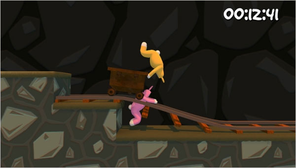在多人模式中最刺激的就是死亡模式,这个是4人联机一起玩的,这个就比较坑了,你要控制你的兔子人,将其他人提出悬崖、折断脖子、拖到道钉上,反正就是特别残忍的玩法,但是却能体验一种坑别人的趣味玩法,两个兔子人在游戏中互相打闹,踹来踹去,特别有意思,不愧是被大家称为“鬼畜”的魔性游戏。