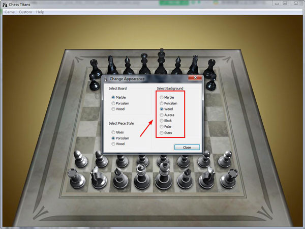 2、在弹出的窗口中可以随意修改游戏的界面风格,还有棋子的风格也是可以修改的