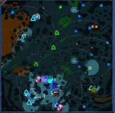 地图上方有一大片密集的丛林,十分影响视野,下方是碳矿和各种巨石分布,适合开局;各种水晶是明显分块分布的,如地图左方,就是一大片紫色的水晶。
