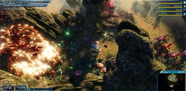 2、开拓Galatea 37是位于银河系Sycorax带的一颗未知行星。远距离调查显示该行星适合人类居住,是理想的殖民点。行星四处分布着稀有的金属及物质。行星上多样的未知动植物与严酷天气往往会让你措手不及。你需要在资源丰富的场所建立前哨站,并通过时空裂缝运输所需资源。