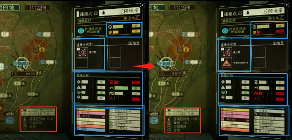 绿色框为刷新科技,如果一个目的地条件恶劣或没有目标资源,可以刷新或选择另一条路线