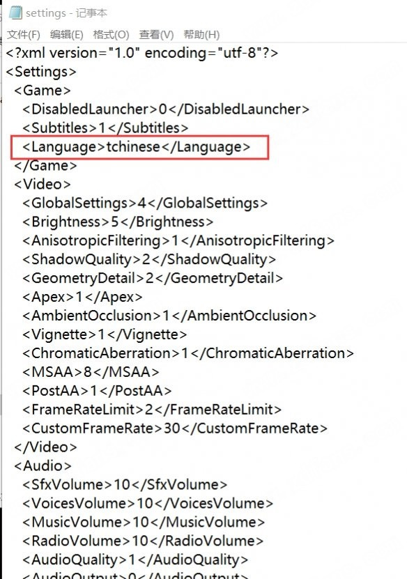 3、修改english中的english为schinese=简体中文或者tchinese=繁体中文即可。