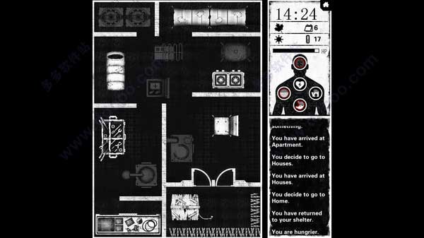《死亡日记电脑版》是一款末日生存策略游戏,英文名BuriedTown。游戏以黑白画面和钢琴音乐营造紧张恐怖的氛围,玩家需要在恶劣环境下生存尽可能多的时间。游戏中有七种属性值:饥饿、心情、外伤、感染、精力、血量和睡眠,这些都会影响你的生存能力。