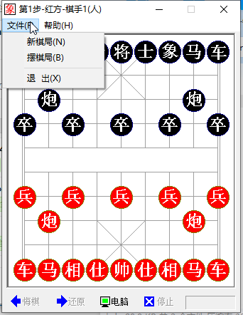 2、单机文件夹可以新棋局或者摆棋局,下方指示栏中还有悔棋和还原等