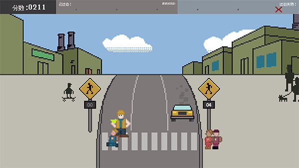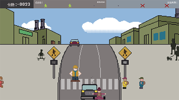 游戏引入时间限制机制,玩家需在车流间隙中快速决策,模拟过马路时的焦急心理。分数随时间递减,连续安全过马路可获得连胜加分,激励玩家提升反应速度与策略规划能力。
